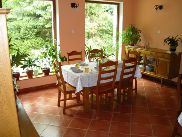 Nasz dom wraz z ogrodem leży w pięknej okolicy otoczonej górami i lasami. Posiadamy pięć pokoi, każdy z łazienką. Do dyspozycji gości aneks kuchenny (lodówka, kuchenka mikrofalowa, czajnik elektryczny), sala kominkowa oraz użyteczny hol w którym można wypocząć po trudach dnia czytając książkę lub oglądając telewizję.Posiadamy również bezprzewodowy dostęp do internetu (Wi-Fi). Na terenie przydomowym znajduje się boisko do gry w siatkówkę, huśtawka, piaskownica, ławeczki, zadaszone miejsce na grilla i ognisko.