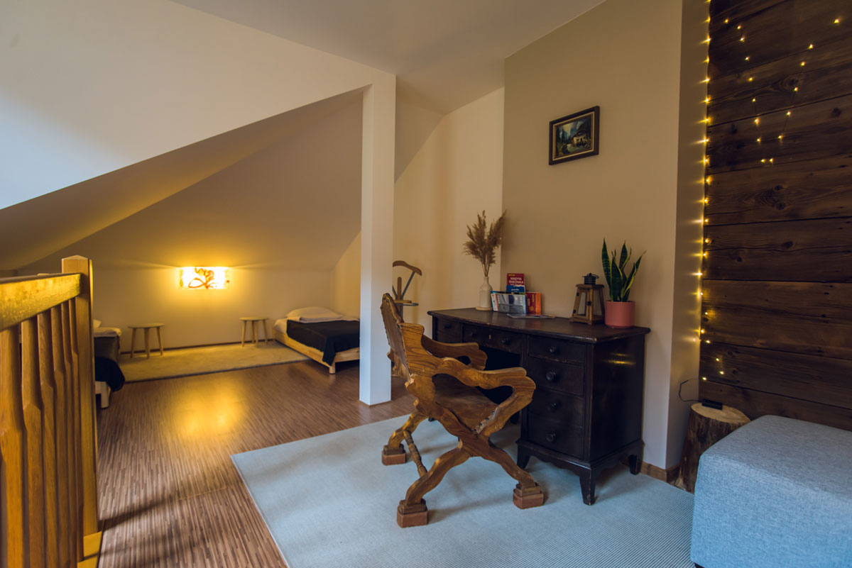 W okolicy same atrakcje, dzika natura za oknem, cisza i spokój… Dla aktywnych znajdzie się też wiele, trasy rowerowe singletrack, wyciągi narciarskie, narty biegowe.