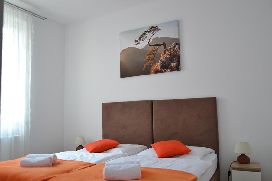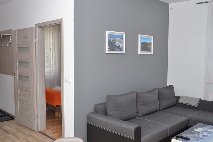 Do dyspozycji 3 apartamenty de lux 4 osobowe o powierzchni około 40 m2 (apartament dwupokojowy – salon z aneksem kuchennym i sypialnia, łazienka z prysznicem i WC, niektóre posiadają balkon wpełni wyposażony), narciarnia, wi-fi, w tym samym budynku sklep spożywczo-monopolowy, z oscypkami i pamiątkami, oraz odzieżowy, 15 metrów do wypożyczalni sprzętu narciarskiego zimą, a po za sezonem narciarskim – rowerów elektrycznych, 50 m restauracja Hubertus