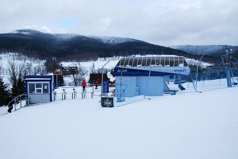 1. Po stronie Bolesławowa mamy szkółkę narciarską, wypożyczalnię sprzętu, kolej linową oraz łagodniejszą trasę zjazdową